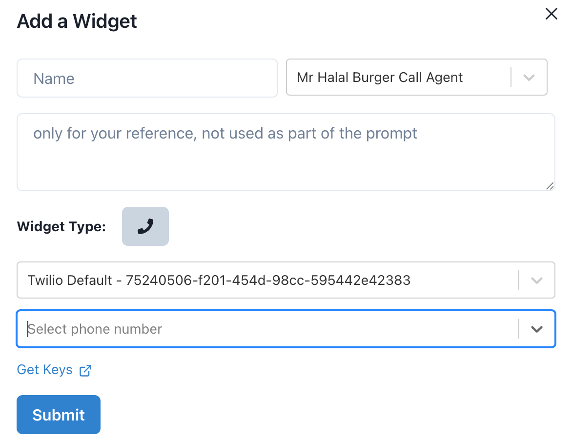 - When you select a Phone Assistant, the Widget Type shown would be just Phone.